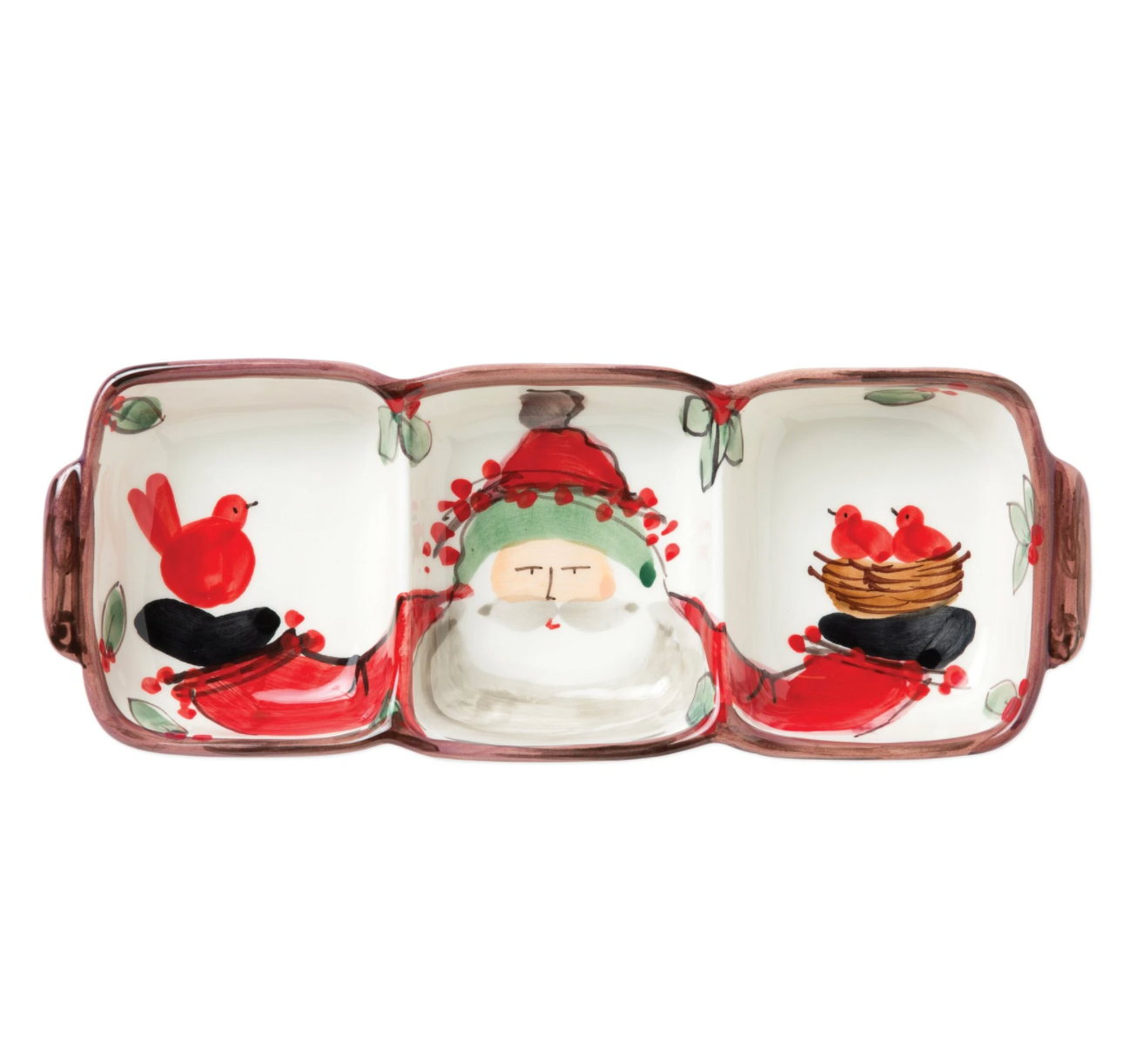 Grab a handful of fluffy marshmallows, chocolate chunks, and graham crackers from the Old St. Nick Three Part Server and roast a delicious smore as you settle by a warm fire during the holidays.