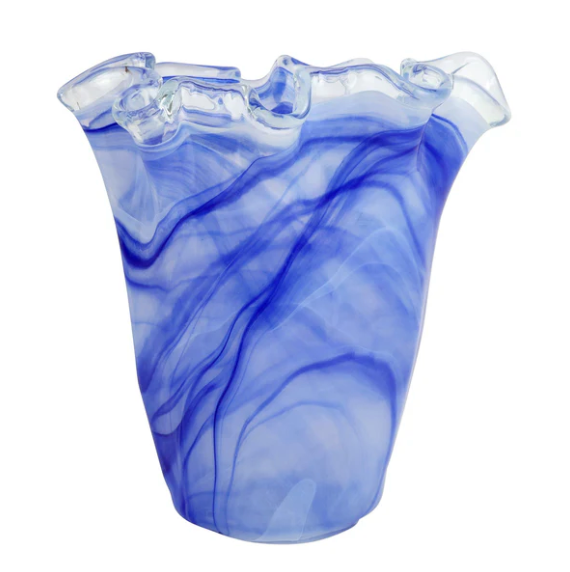 VIETRI Onda Glass Cobalt Ruffled Vase