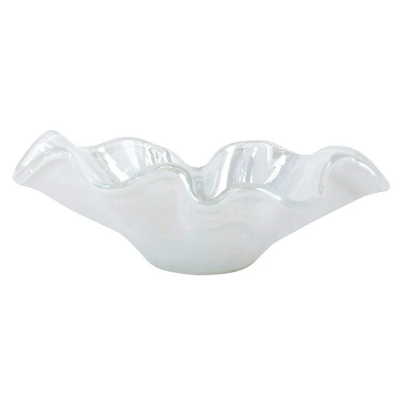 Mouthblown in Italy, the Onda Glass White Large Bowl makes a sophisticated centerpiece on its own or filled with flowers freshly picked from your garden, or given by someone special.