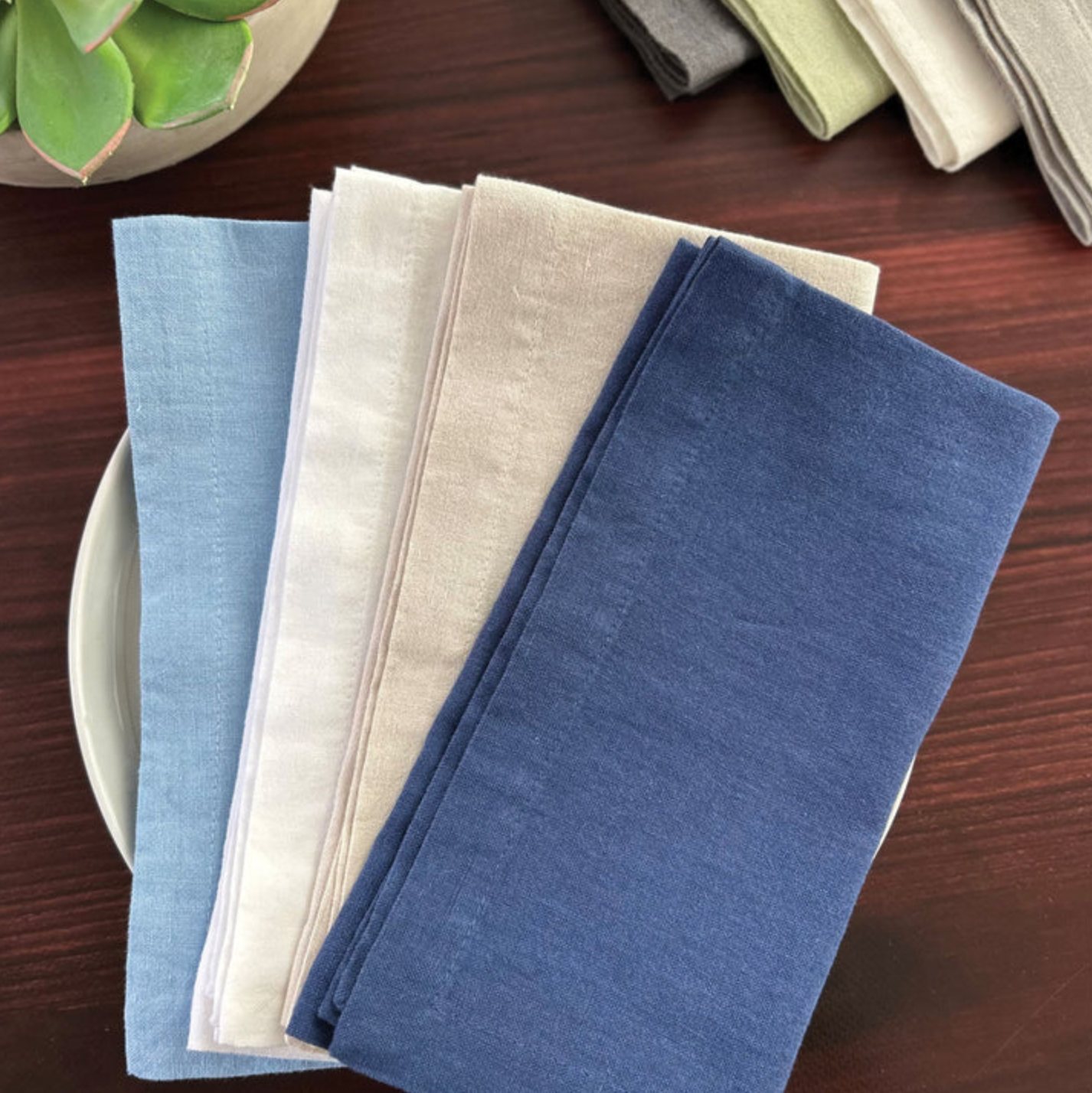 Solid napkins are always a great option due to their versatility. Our Amalfi line is no different, featuring 14 stunning colors ranging from colorful to neutral. Made with a blend of linen and cotton, these stonewashed napkins are incredibly soft to the touch.