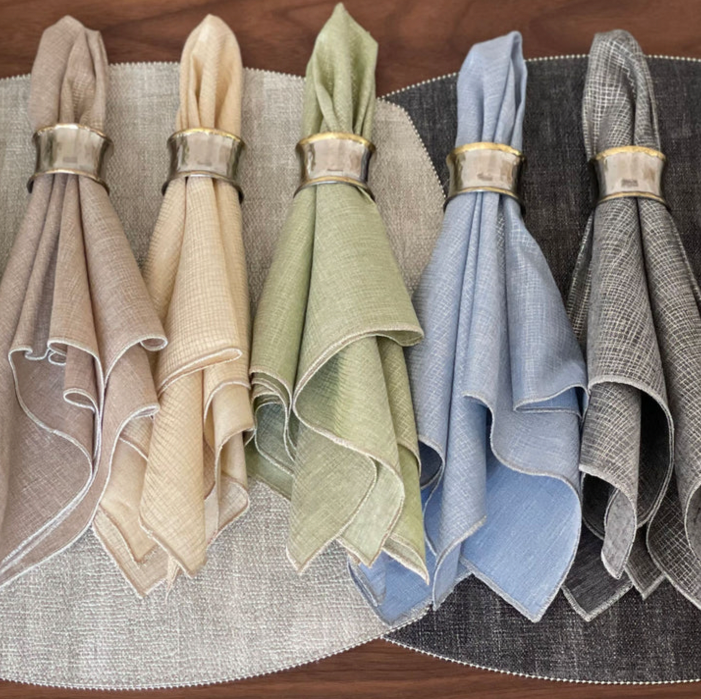 Radiating with sophistication, our Glisten napkins have have a metallic finish that will add some sparkle to your table. Available in 7 stunning colors to enhance your home, they pair beautifully with our Luster placemats!