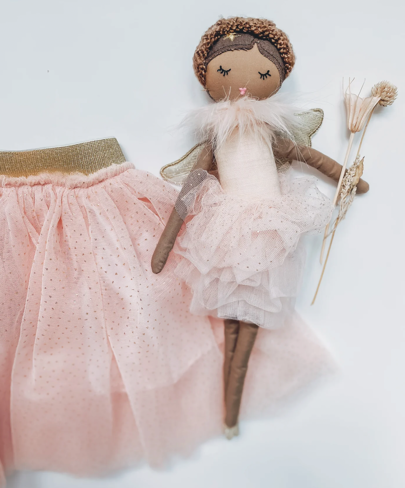 Meet Ada, the angel doll, your little one's new best friend! This elegant, stuffed doll is unbelievably soft and designed with exquisite detail, making her the perfect gift for any little girl. Ada comes ready to watch over your little one in a tulle dress with gold sparkle wings. As a birthday or holiday gift, this angel doll will be cherished for years to come.
