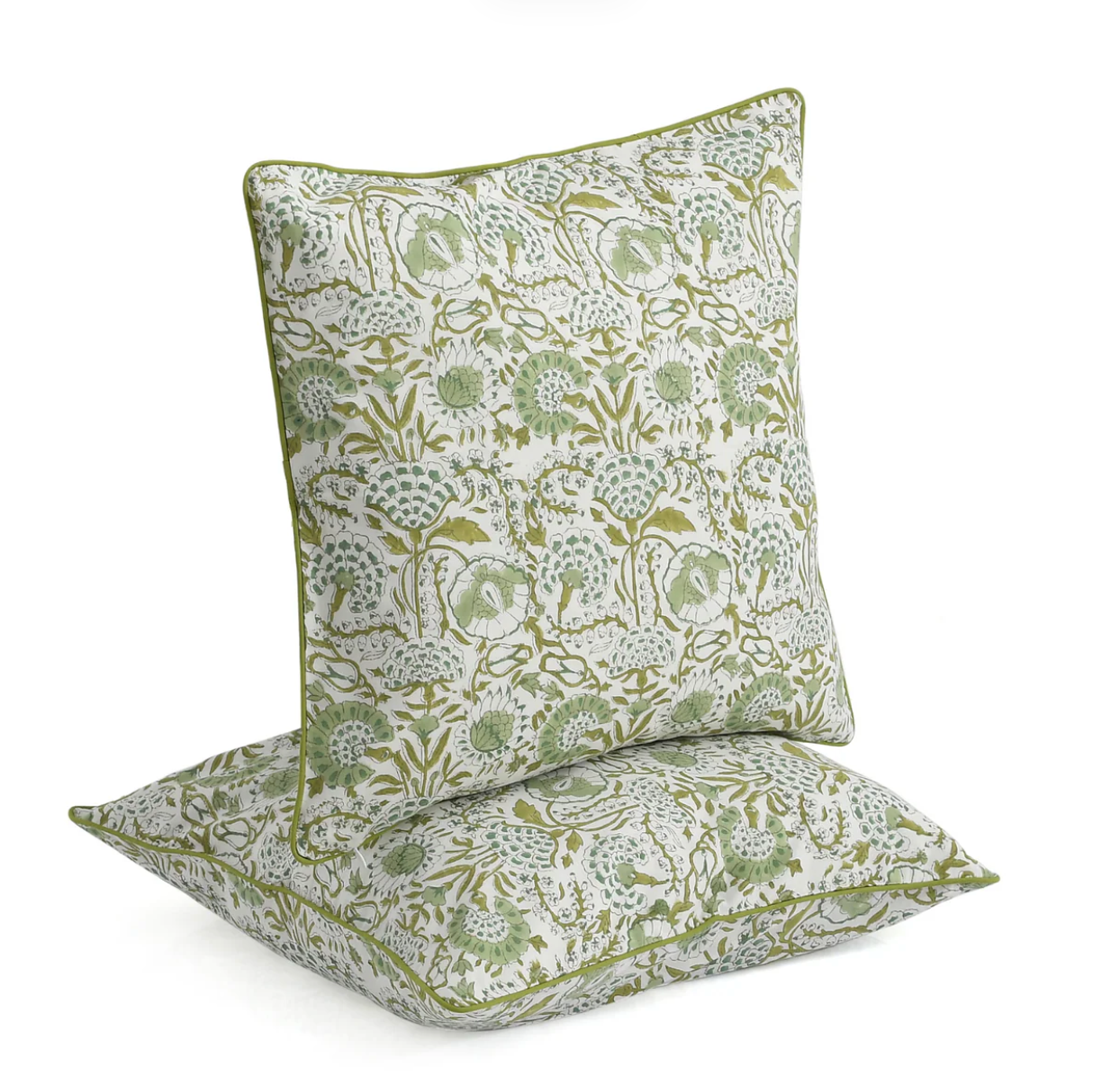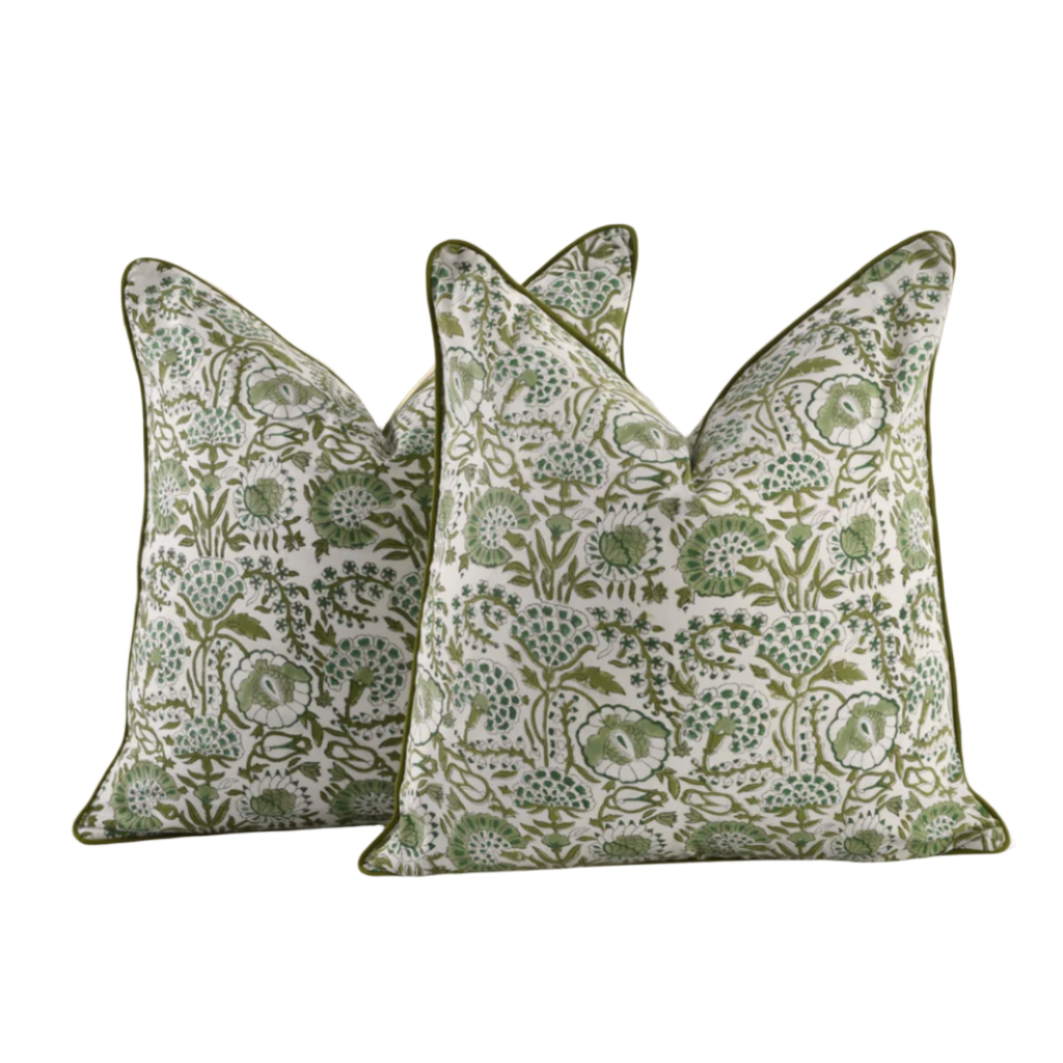 Elevate your home with the timeless charm of hand-block printed cotton pillow covers. These pillow covers feature double-sided printing, refined piping along the edges, and a hidden zipper closure for a polished, luxurious look.