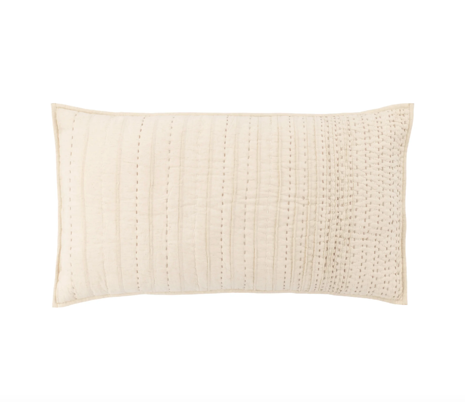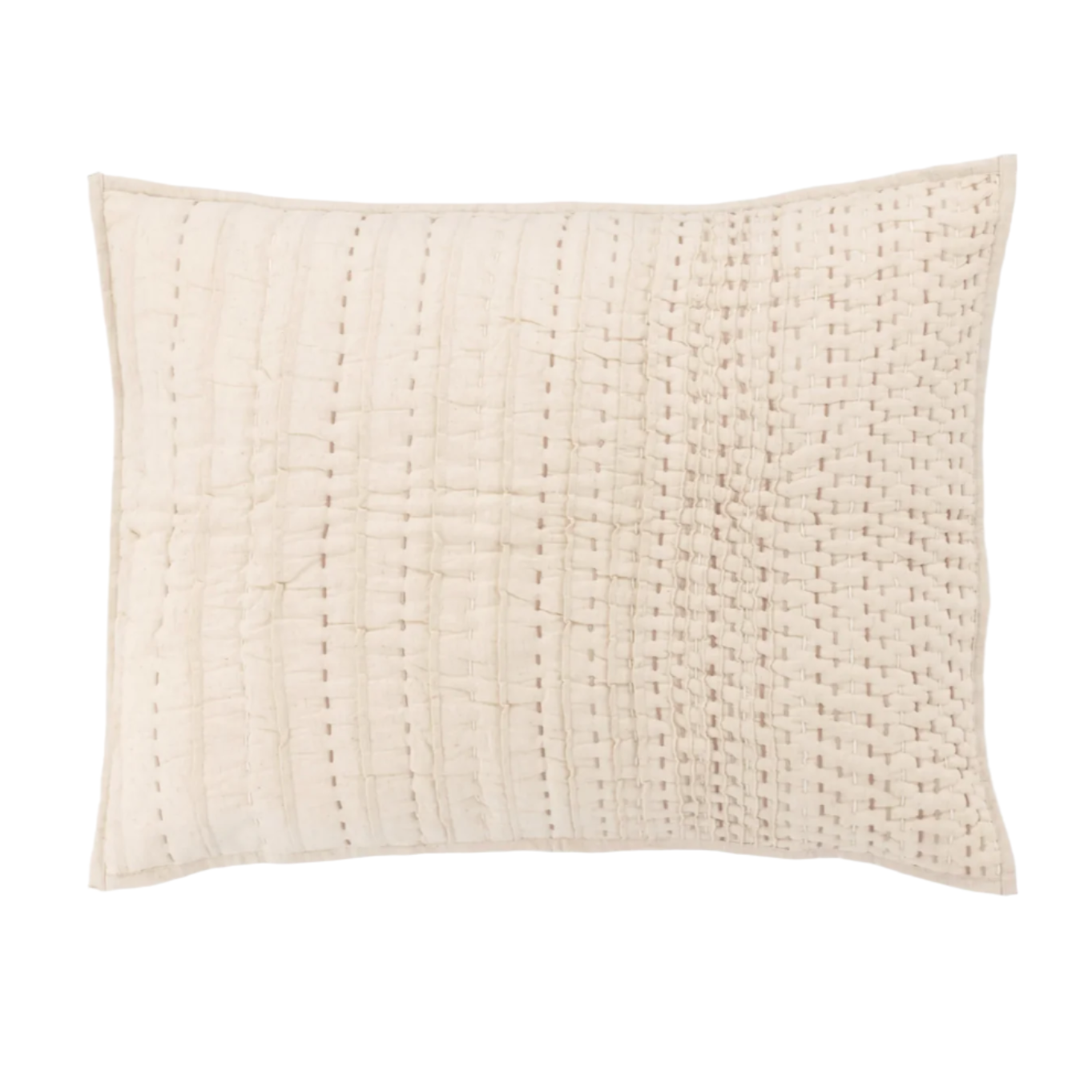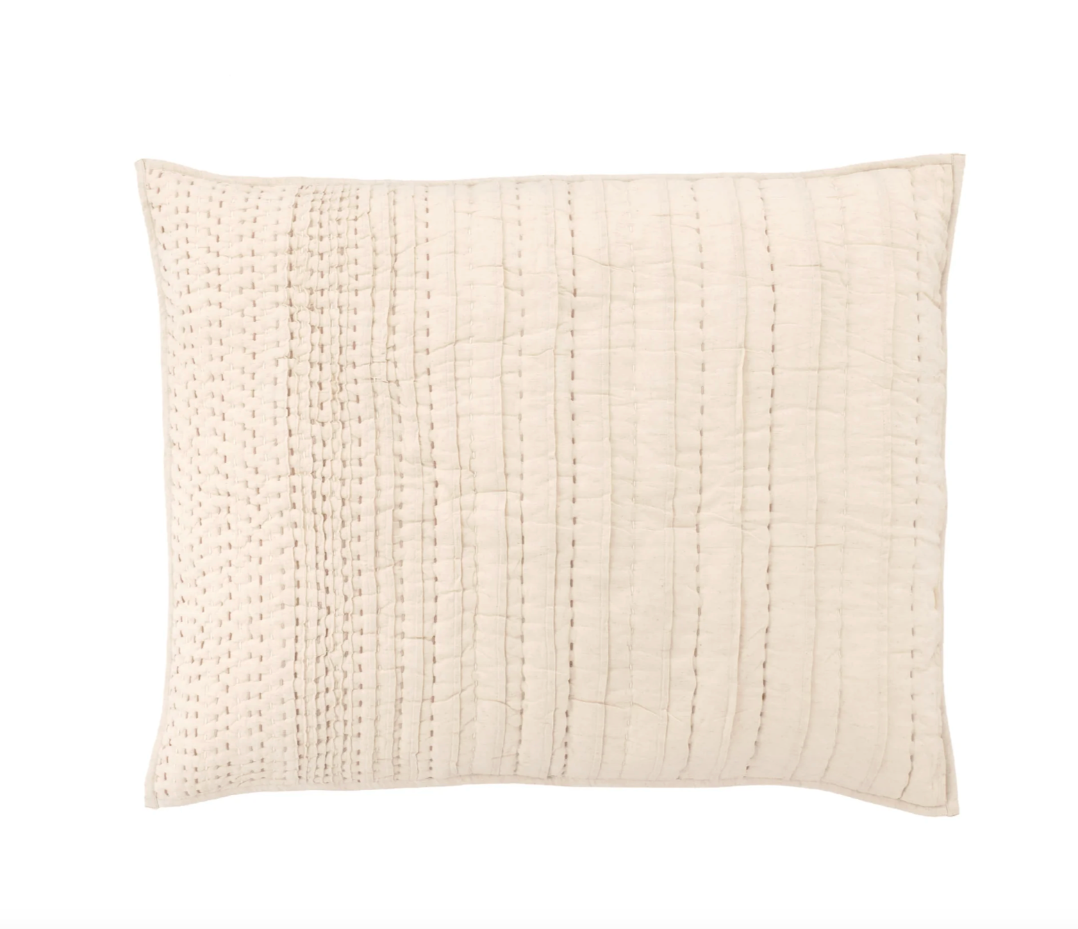 The Bryant Natural Sham combines classic Kantha pintuck stitching with tonal color variations for a beautifully relaxed look. Crafted from soft, 100% cotton, this cozy piece layers easily and offers plenty of texture and natural charm. Pair with the Byrant Natural Quilt to create a space that feels effortlessly inviting.