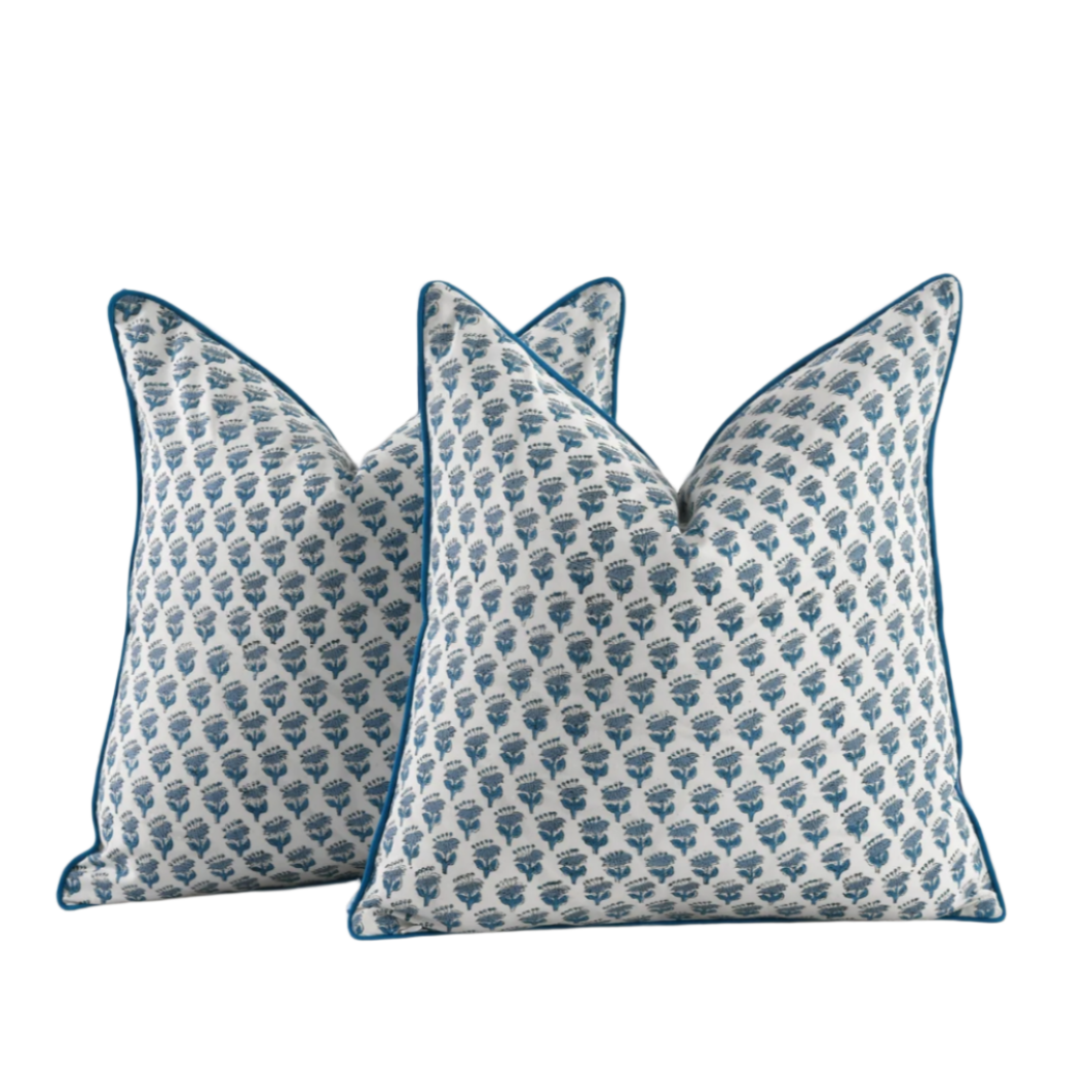 Elevate your home with the timeless charm of hand-block printed cotton pillow covers. These pillow covers feature double-sided printing, refined piping along the edges, and a hidden zipper closure for a polished, luxurious look.