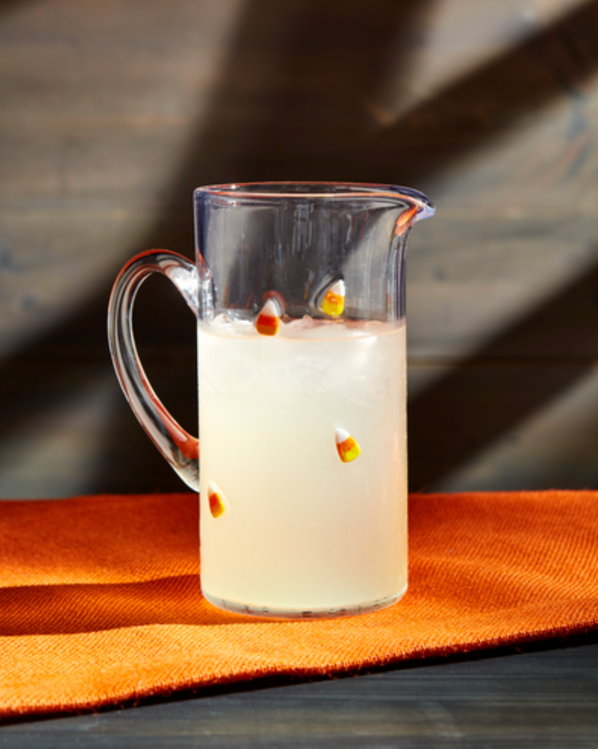 The Candy Corn Pitcher is a stunning piece of handblown glassware that is sure to add a touch of whimsy to any table setting. This pitcher features intricate candy corn icons that are embedded within the glass, creating a unique and eye-catching design.