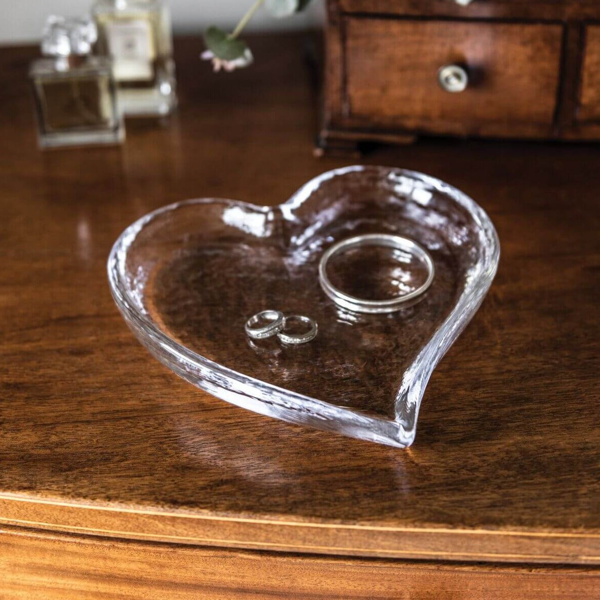 All about love. This glass heart tray is perfect for candy, little treasures or left to shine on its own. A sweet gift to show what’s in your heart.