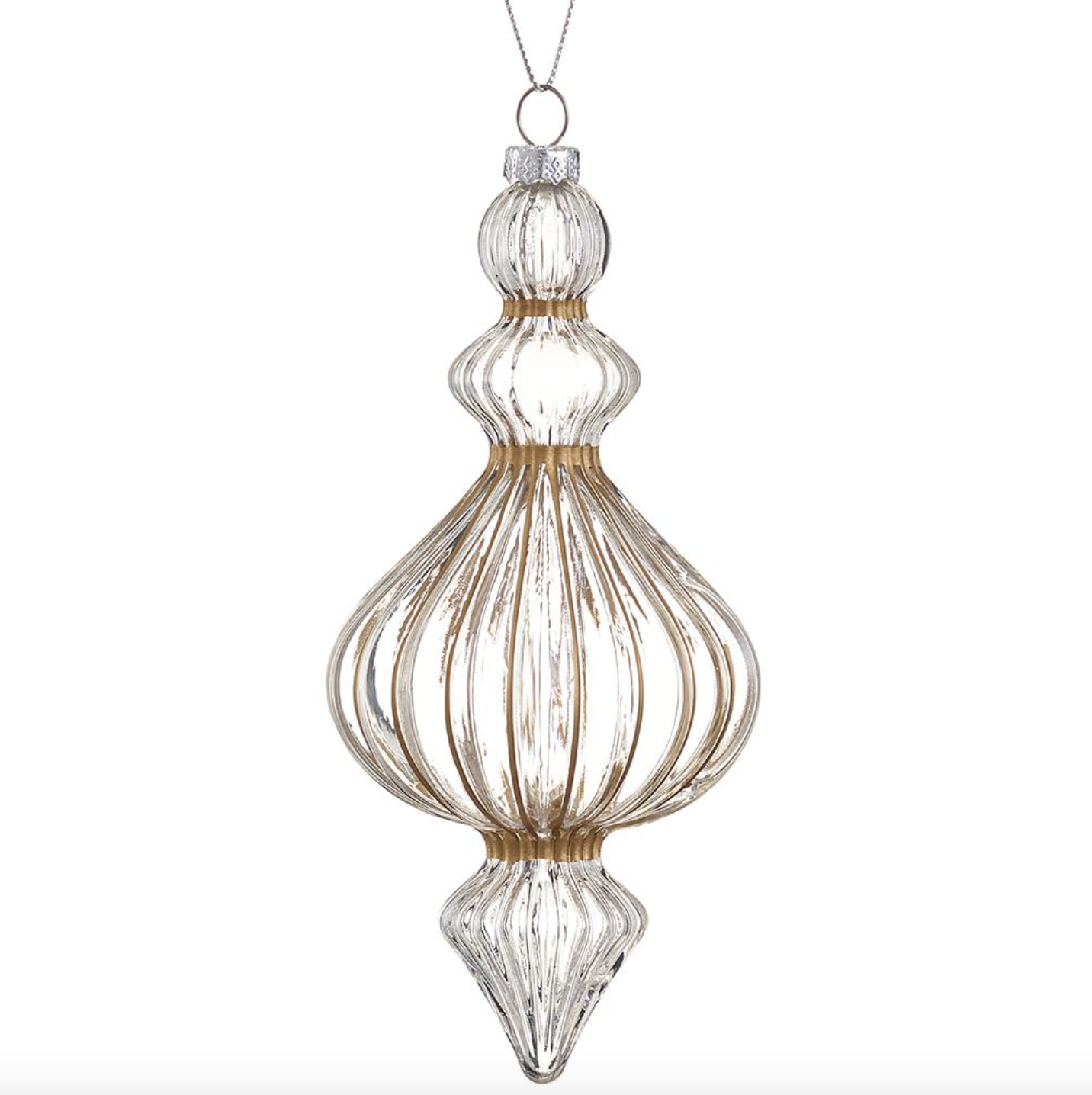 Add a playful sparkle to your holiday décor with the 6" Golden Finial Ornament. Crafted from glass and accented with shimmering gold details, this elegant piece brings a touch of festive magic and charm to your tree or mantel. Its unique shape and gleaming finish promise to catch every eye and spread joyful cheer.