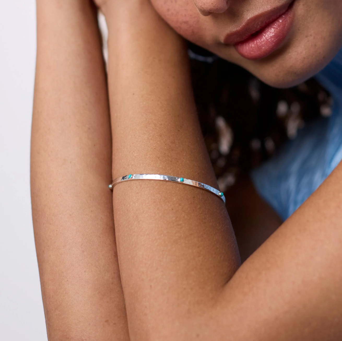 Lightly hammered bangle with Turquoise Stone.
