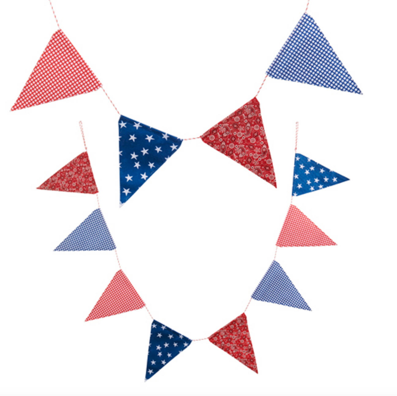 Get ready to celebrate Independence Day in style with this festive 5.5' Red, White, and Blue Pennant Garland! Featuring a mix of plaid, paisley, and star prints on a classic red and white rope, this garland adds the perfect patriotic touch to your décor. Hang it around your front door, porch, mantle, or party space to create a fun atmosphere. A must-have for summer celebrations!