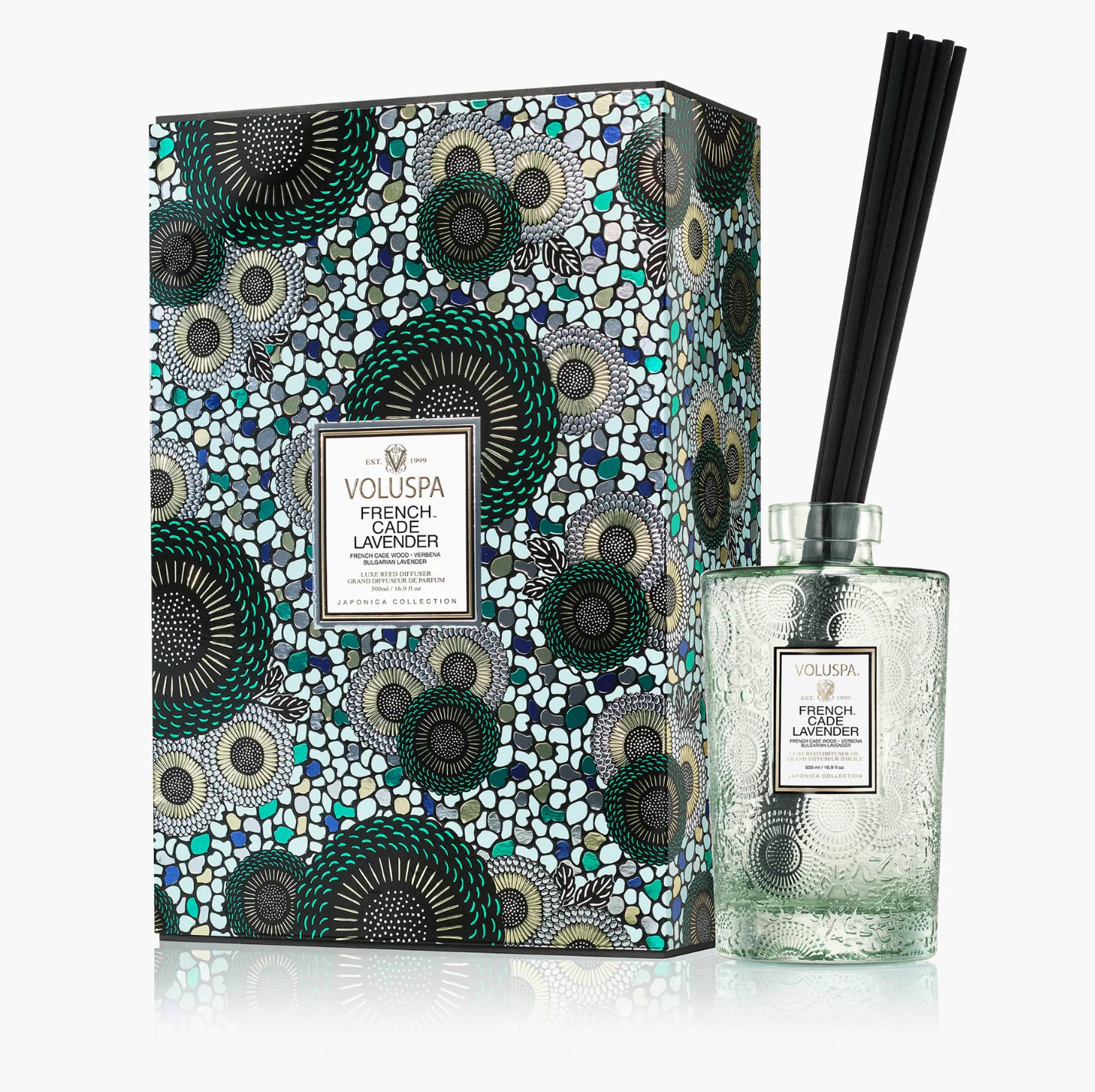Voluspa’s fragrant diffuser oil is housed in an embossed glass vessel for a subtle pop of elegant decor. Create your homes signature, always-on fragrance in spaces requiring minimal effort, and enjoy for 4-6 months. Includes high absorbency reeds for powerful fragrance without overwhelming.