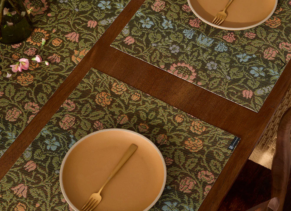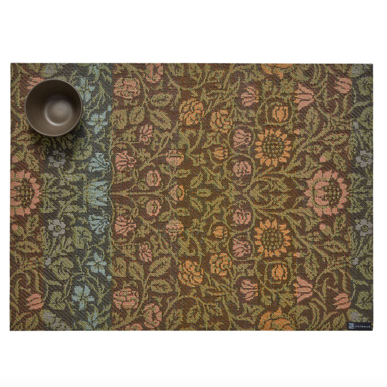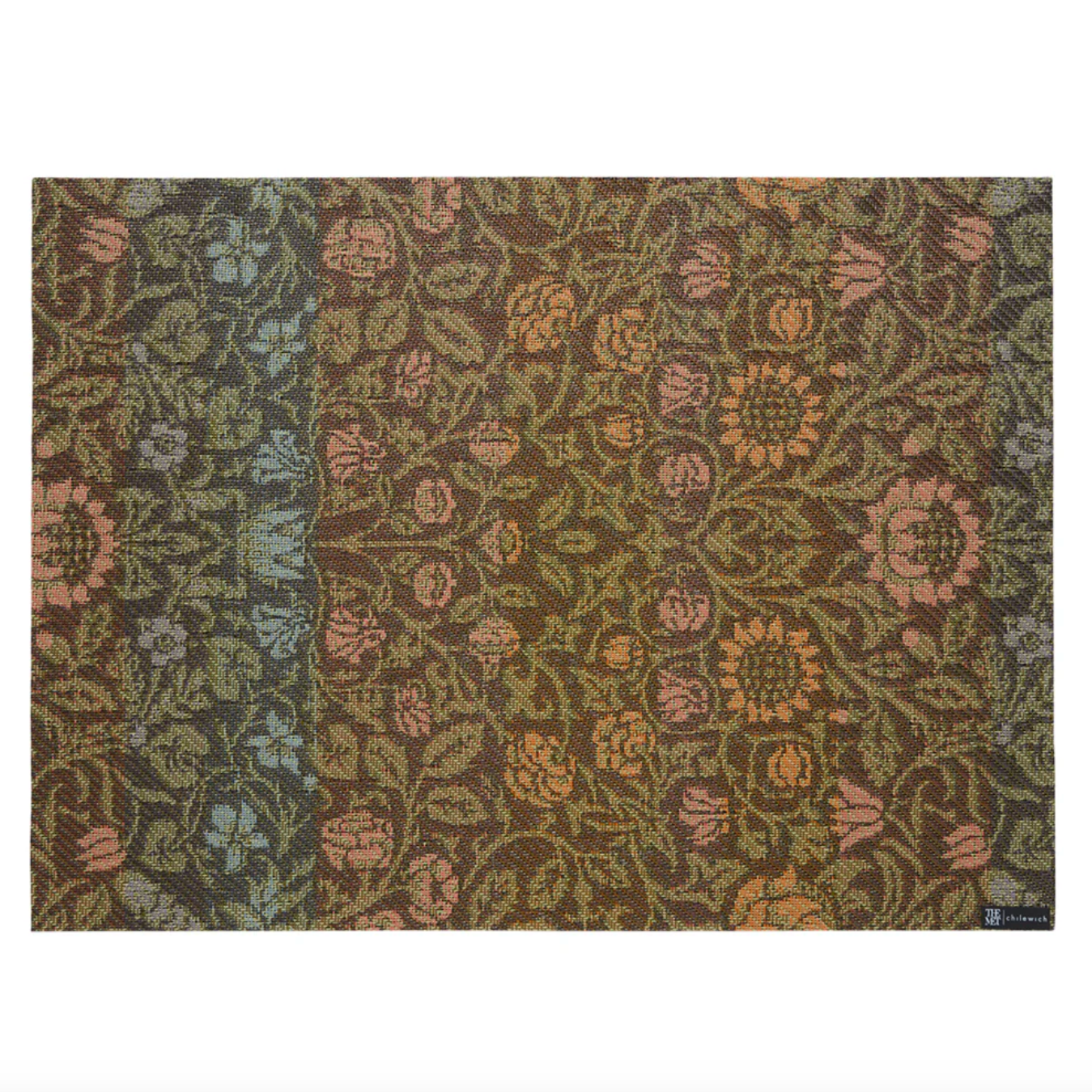 Inspired by William Morris’s (British, 1834–1896) Violet and Columbine, a textile design registered in 1883, this table runner was developed through contemporary weaving techniques with a nod to traditional craftsmanship. Sketching and digital rendering in the Chilewich design studio helped translate the inspiration into a modern woven structure, bringing new functionality to its organic forms, rich colors, and complex pattern repeats.